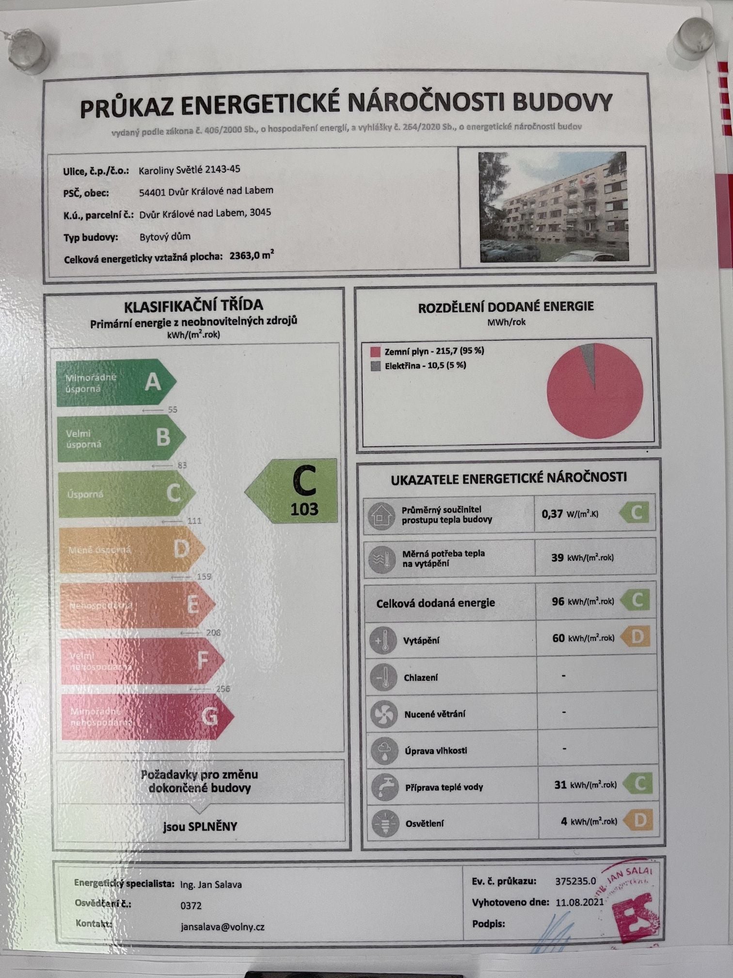 | Ukazatel ENB | 103 kWh/m2 za rok |
