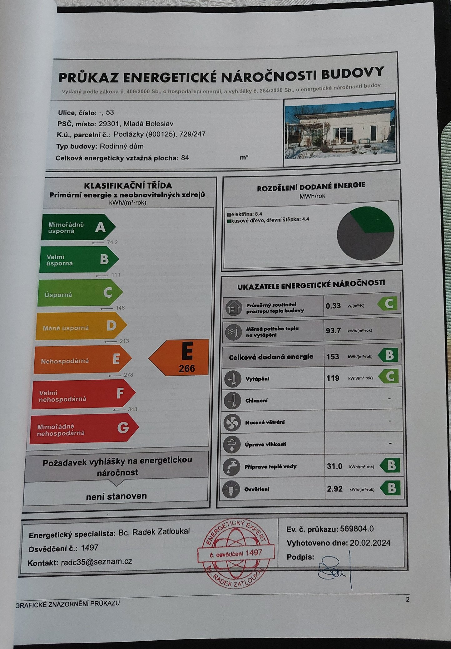 Ukazatel ENB | 266 kWh/m2 za rok |